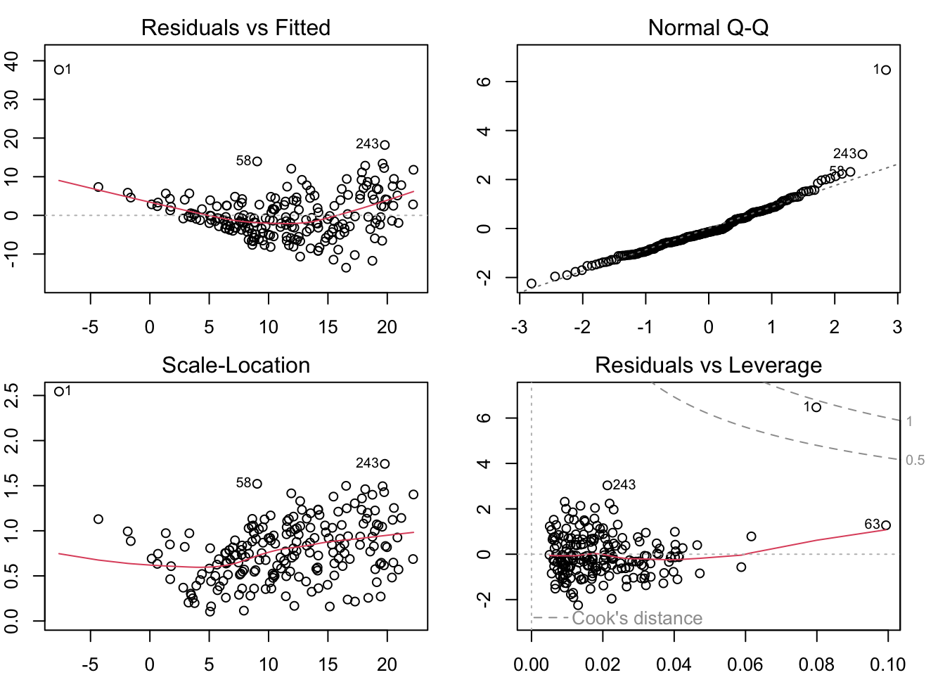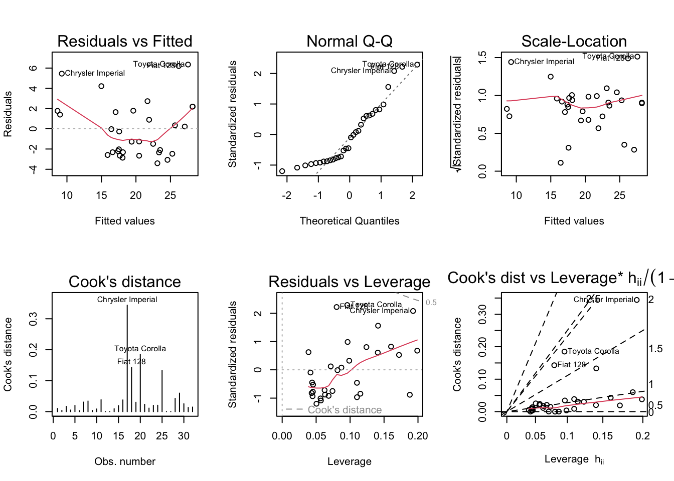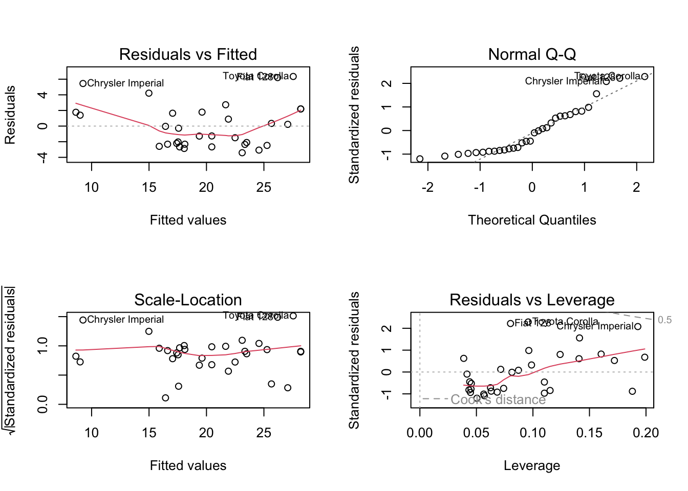 par (mfrow = c (2 , 2 )) # plot.lm produces four plots.